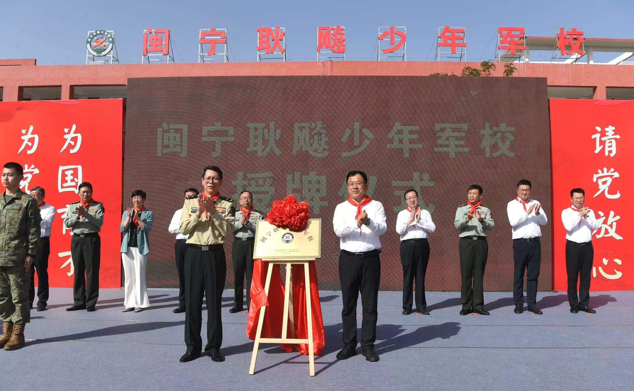 永宁县闽宁镇玉海小学是六盘山革命老区的移民学校,2013年被命名为“中国工农红军耿飚红军小学”,广泛开展“四红”教育活动、建设红军长征展览室,“重走长征路”红色文化园、组建了小红军宣讲团,让孩子们在读书中获取营养,在故事中坚定信仰,在活动中塑造品行。郭建军、赵旭辉、邓艳平一行来到“重走长征路”红色文化园,聆听小红军讲解员讲述长征故事,参观红军展厅、少队室、爱国主义教育文化长廊,观摩学生军事体验训练,为孩子们所展现出的爱国热情、拥军深情点赞,鼓励学校擦亮国防教育特色,传承红色基因,教育孩子们向英雄模范学习、热爱党、热爱国家、热爱人民,种下一颗爱党爱国爱国防的种子。郭建军、赵旭辉、邓艳平等共同参加耿飚少年军校揭牌,现场自治区有关部门与宁夏军区有关部门签订了少年军校共建合作备忘录。